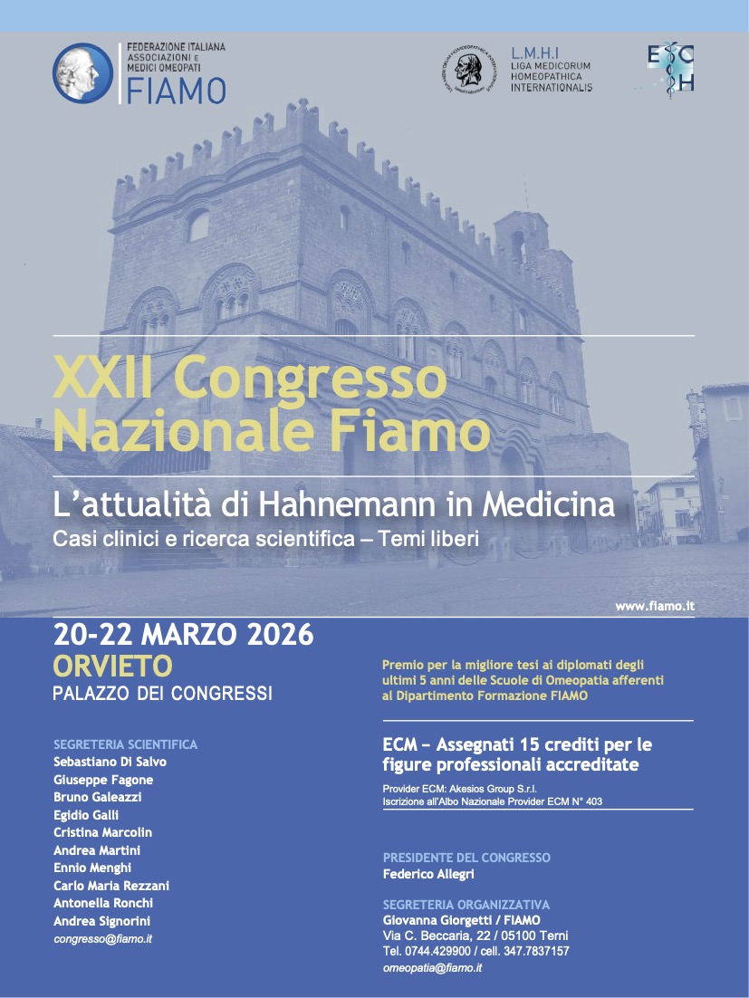 “L’attualità di Hahnemann in Medicina”. È questo il filo conduttore che nel 2026 percorre il XXII congresso nazionale FIAMO, l’appuntamento che vede riunirsi a Orvieto i soci della Federazione Italiana Associazioni e Medici Omeopati.